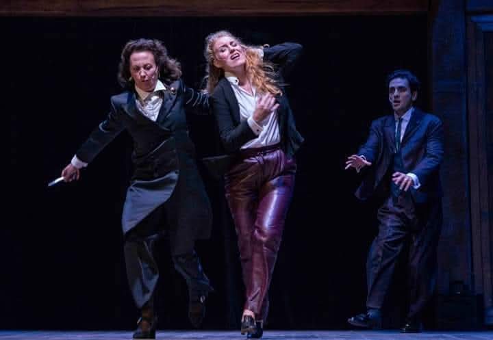 Clare (left) as Shylock in The Merchant of Venice at the Globe Theatre, Rome